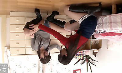 Pantyhose Leg Licking Lesbian Scene of a Damsel Who Looks Good With Beautiful Legs in Long Boots