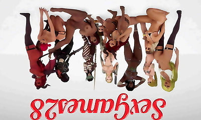 Lesbian cosplayers take a break from dressing up to make out and gobble culo while doing sixty 9