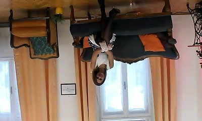 Fake Hostel - Slim blonde babe bound up and fucked by Futa MILF cock in bidy stocking with oral and pussy internal cumshot orgasm