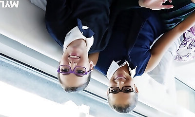 lesbian twins play with each other's twats on the beach. Two cute girls with small bosoms are best friends